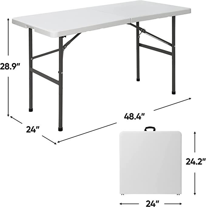 SUPER DEAL Portable 4 Foot Plastic Folding Table, Indoor Outdoor Heavy Duty Fold-in-Half Picnic Party Camping Barbecues Table with Carrying Handle, White