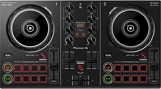 Pioneer DJ DDJ-200 – 2-deck Digital DJ Controller with USB/Bluetooth Connectivity, WeDJ App, and 16 Performance Pads
