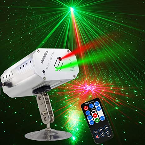 SUNY Stage Party Lights Music Show DJ 128 Combinations Christmas DJ Projector Indoor 5 Lens 3 Color RGB Decoration Light Blue LED Remote Control Stage Lighting Sound Activated